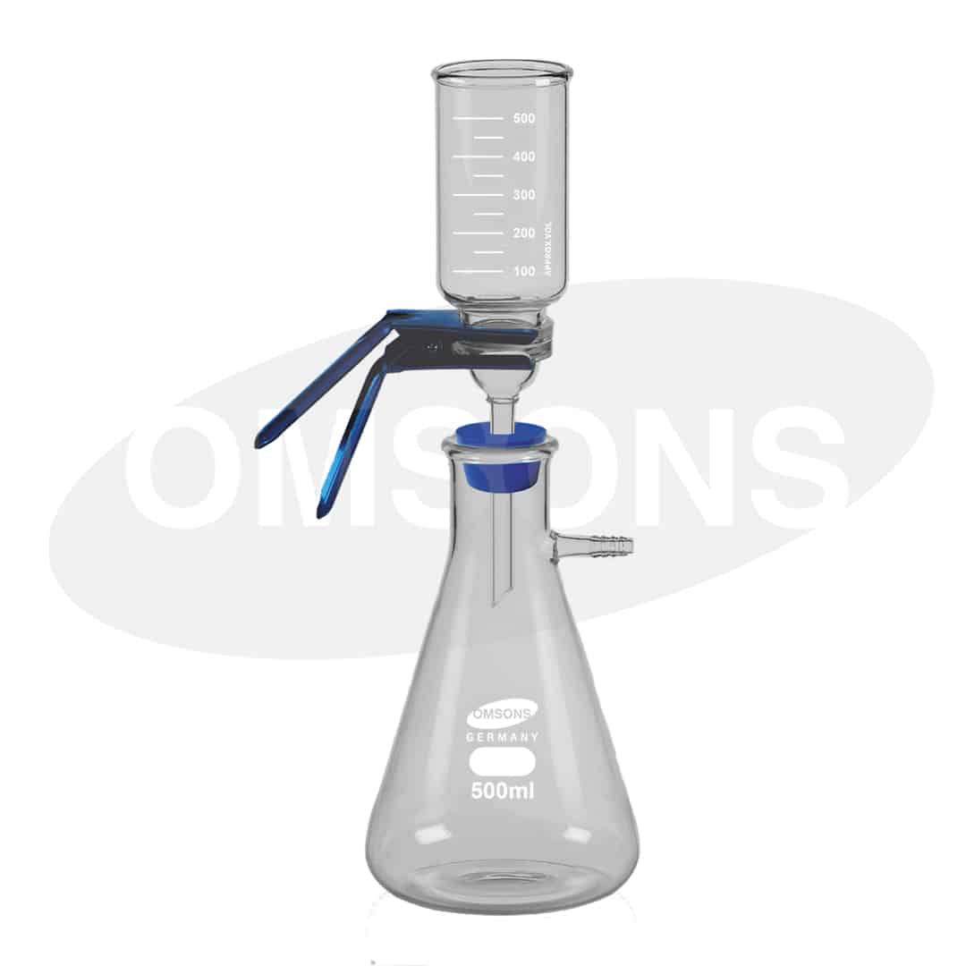 - Fabricado en vidrio de borosilicato con base de filtro de vidrio sinterizado.