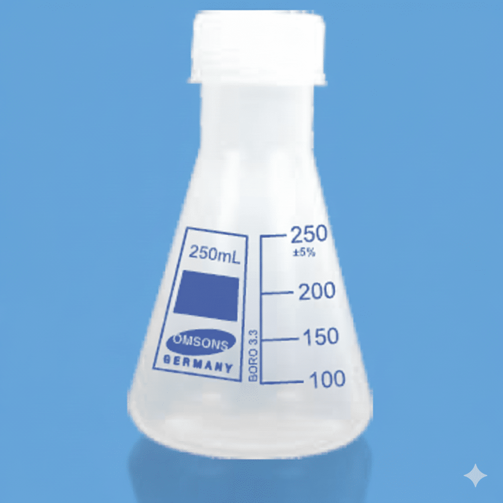 ERLENMEYER EN PLÁSTICO CUELLO ANGOSTO CON TAPA ROSCA