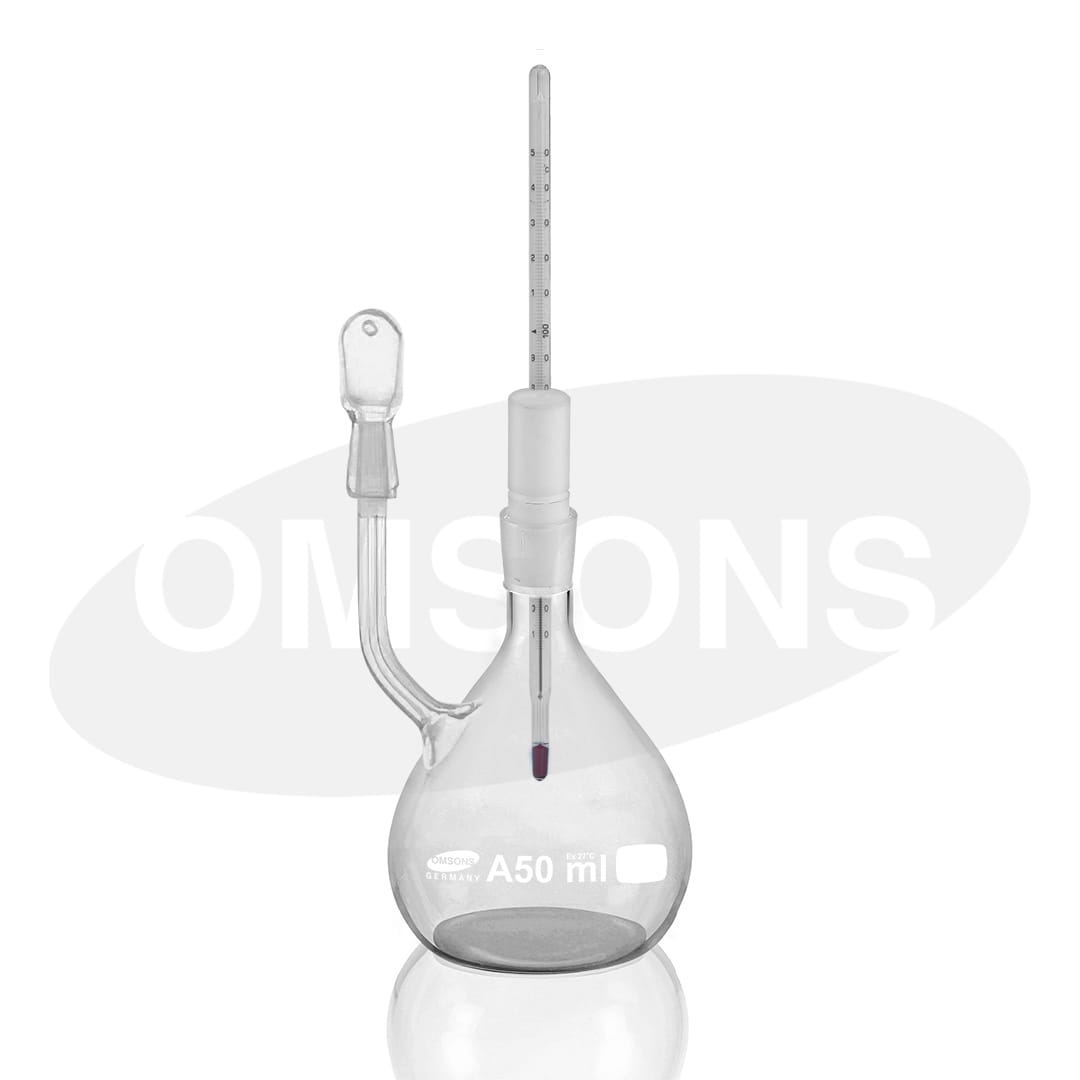 PICNÓMETRO, CON TERMÓMETRO, CALIBRADO. CON CERTIFICADO POR LOTE.
